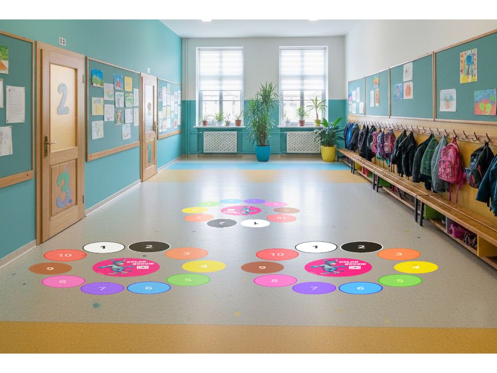 - Vnitřní použití: Samolepky jsou určeny do interiérů – ideální pro chodby, učebny, herny nebo tělocvičny. (Nevhodné pro venkovní použití.)