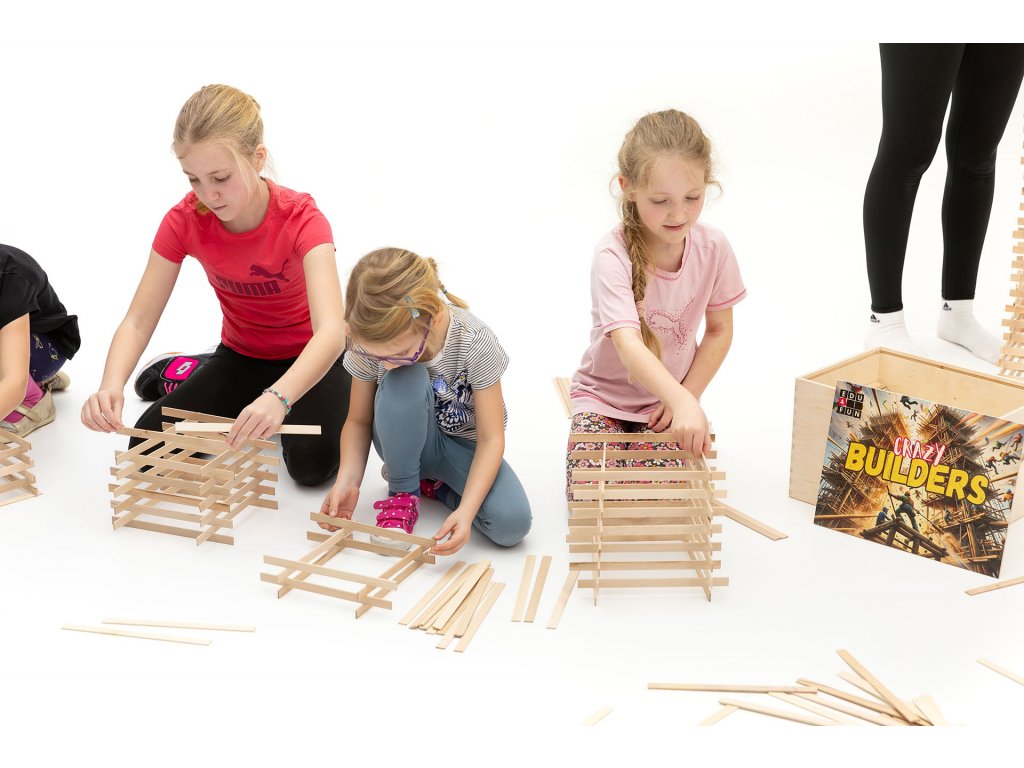 Stavebnice obsahuje 1000 ks dřevěných dílů vyrobených z kvalitního bukového dřeva, což zajišťuje dlouhodobou odolnost a bezpečnost při hře. Součástí je také metodická příručka, která nabízí návody na různé týmové aktivity a obsahuje Crazy builders training. Díky tomu se děti špičkově seznámí s fyzikálními koncepty a experimenty, což podporuje jejich zvídavost a chuť objevovat nové věci.