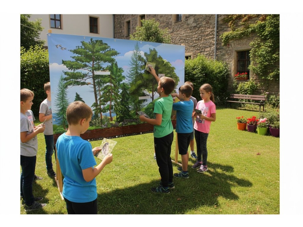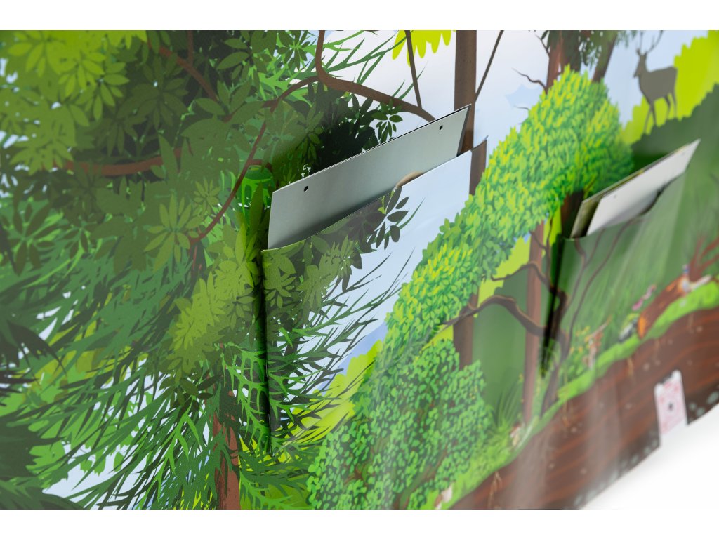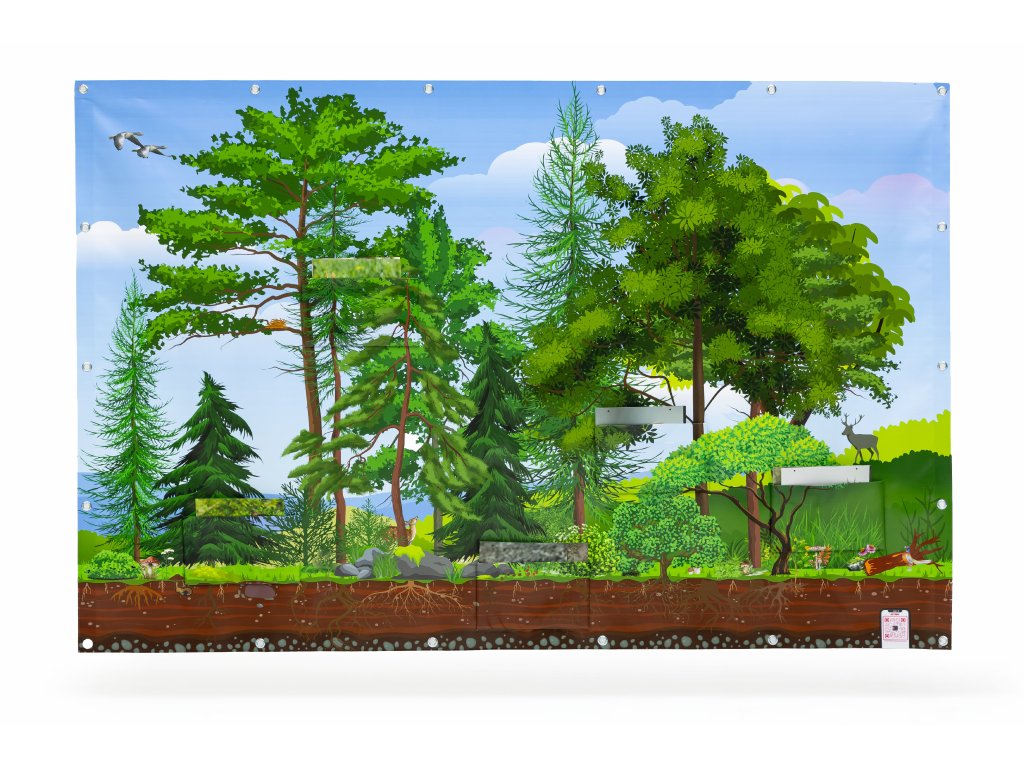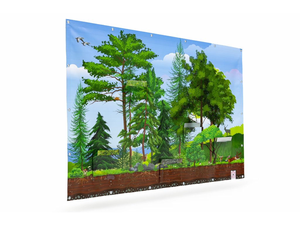 - 1× velkoformátový banner 140x220 cm s kapsami v jednotlivých lesních patrech