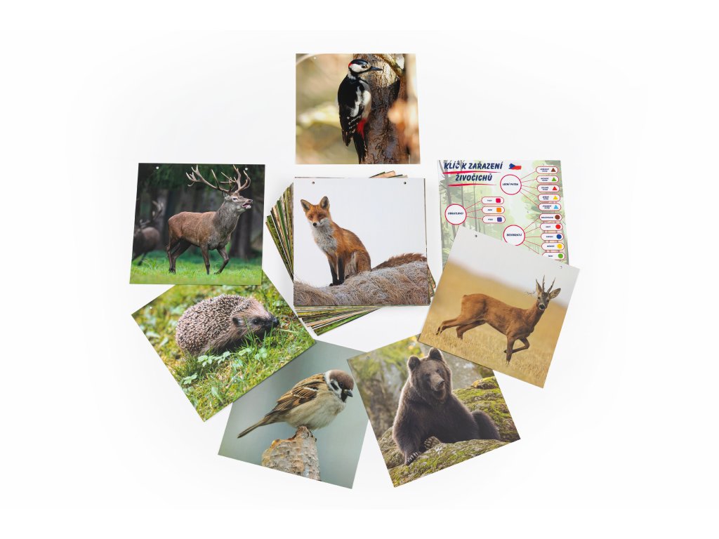 Součástí sady je 100 vysoce odolných karet živočichů s fotografiemi a popisem na zadní straně z českého a slovenského prostředí. Děti tak mohou: